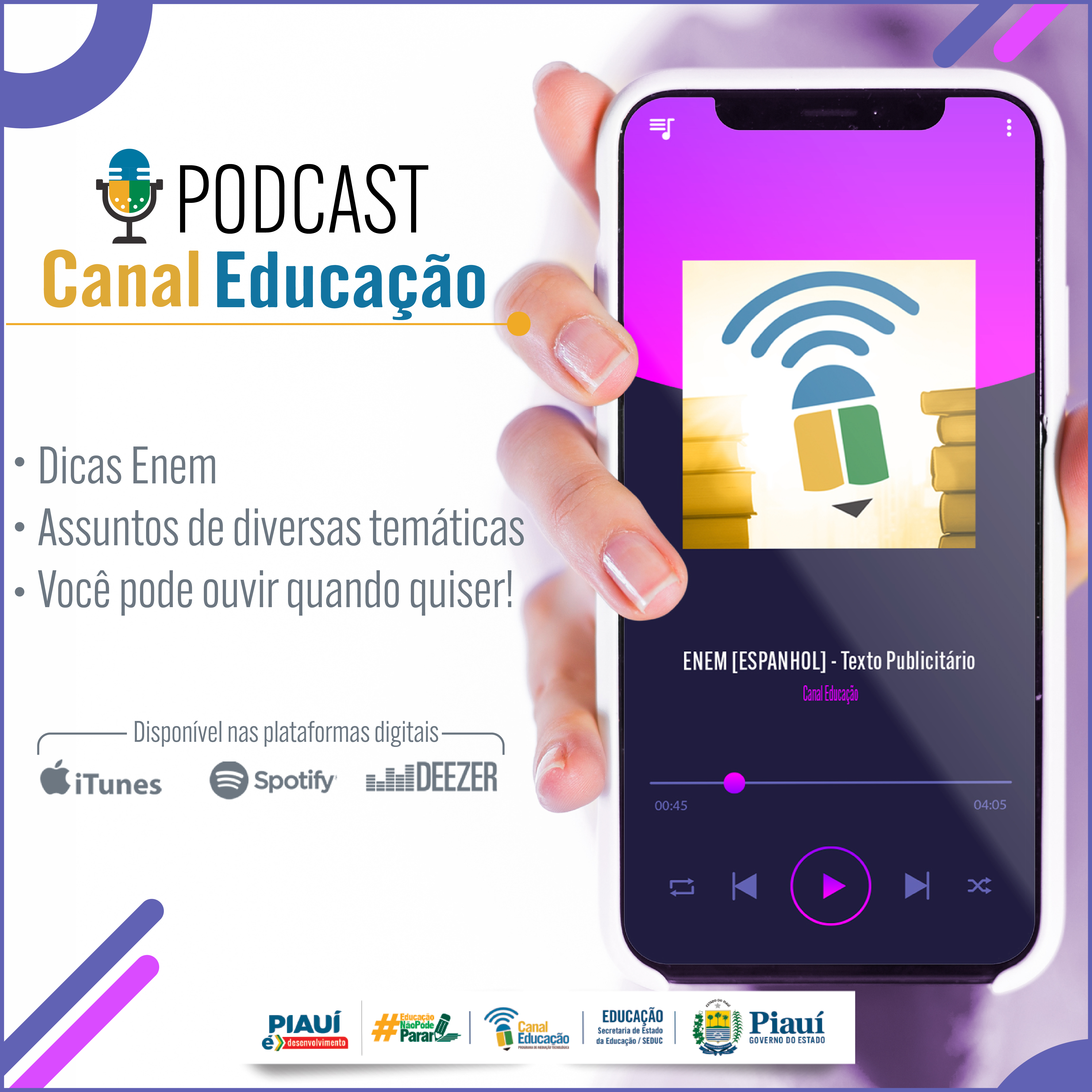 Para escutar é muito fácil! Primeiro acesse seu aplicativo de streaming (Spotify, Deezer ou ITunes), em seguida, clique em ‘buscar’ e escreva ‘Canal Educação”. Selecione a primeira opção. Você será direcionado a todo o conteúdo, com dicas para o Enem de forma fácil e didática.