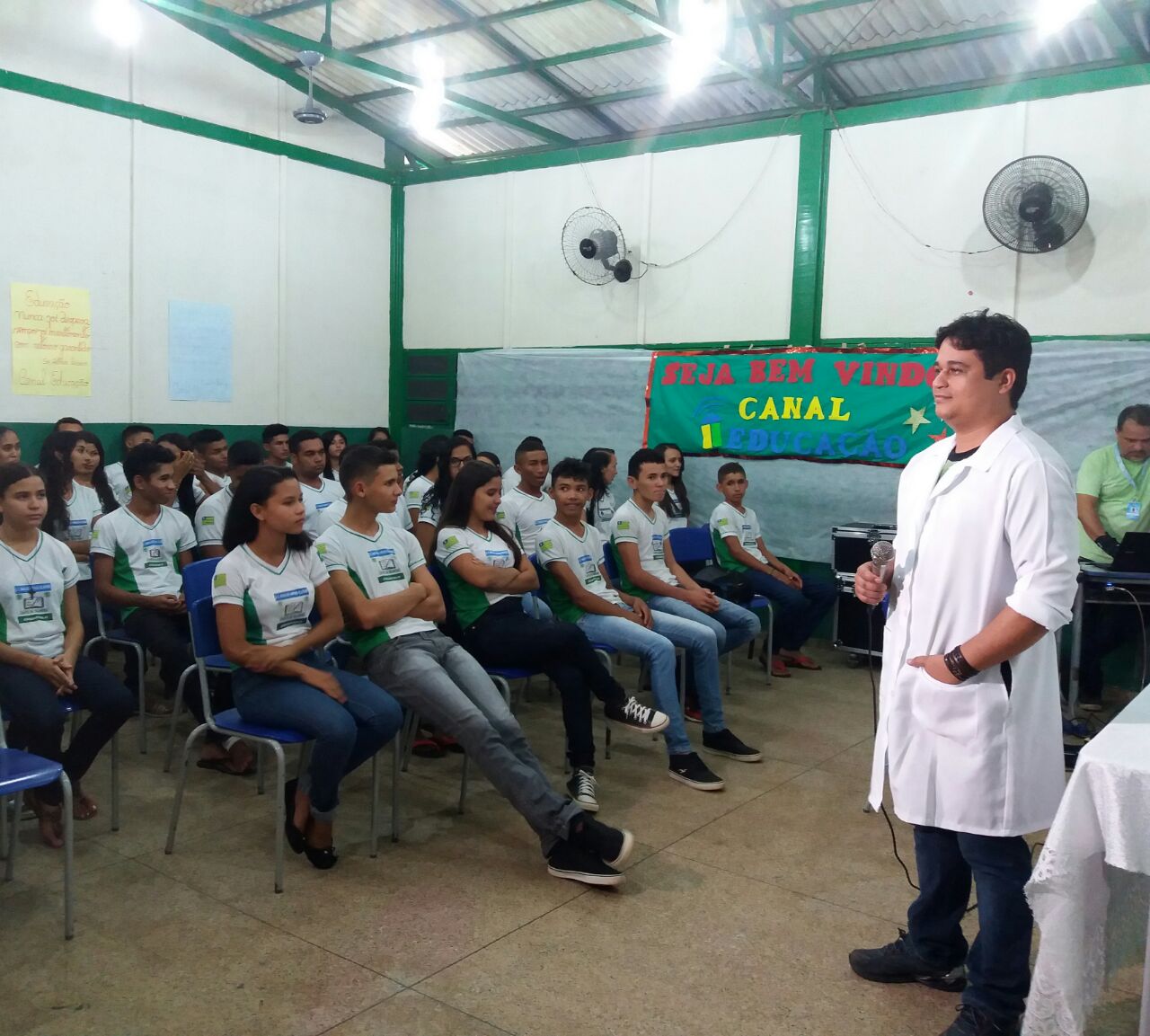 No primeiro momento, Thárcio visitou a escola, onde ministrou uma aula com o tema central "Divisão Celular".