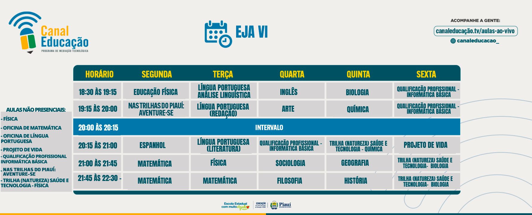 InícioMateriais PedagógicosHorário Horário EJA (Educação de Jovens e Adultos) Noite EJA (Educação de Jovens e Adultos) Etapa IV EJA (Educação de Jovens e Adultos) Etapa V EJA (Educação de Jovens e Adultos) Etapa VI EJA (Educação de Jovens e Adultos) Etapa VII EJA (EDUCAÇÃO DE JOVENS E ADULTOS) ETAPA IV EJA (EDUCAÇÃO DE JOVENS E ADULTOS) ETAPA V EJA (EDUCAÇÃO DE JOVENS E ADULTOS) ETAPA VI EJA (EDUCAÇÃO DE JOVENS E ADULTOS) ETAPA VII