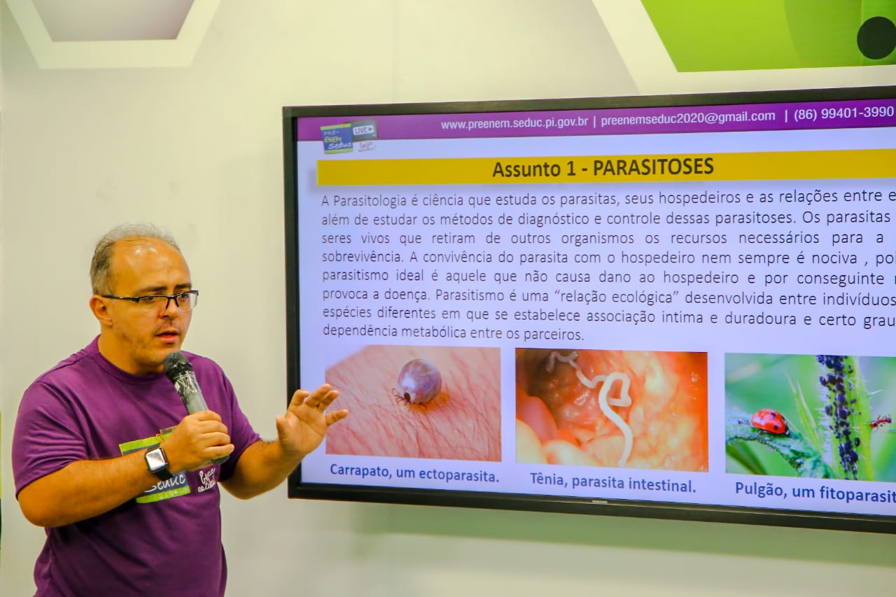 Abrindo a programação das aulas, o professor de Biologia, Tércio Câmara, abordou conteúdos como: doenças parasitosas, genética, higiene e saúde. "Em todas as revisões venho dando sequência aos conteúdos já estudados para que o aluno entenda todo o processo e não fique perdido na matéria. Saúde e higiene nunca esteve tão em alta e dessa forma vamos falar sempre desses temas e tudo que esteja relacionado, pois com certeza estará na prova do Enem", afirmou o professor.